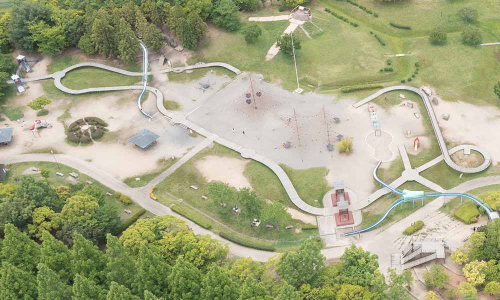 広大な広場です。アスレチックやすべり台もあります。遠足やレジャーに最適です。