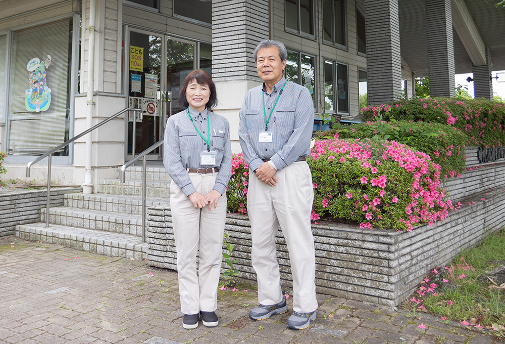 落とし物や、怪我、迷子など、お困りのことがあれば、この制服を着たスタッフにお声がけください。公園管理棟や、各施設の受付に待機しています。