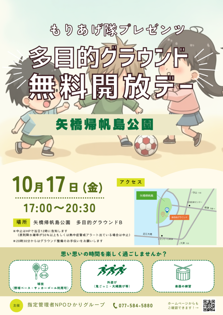 10/17(金)多目的グラウンド無料開放デー!