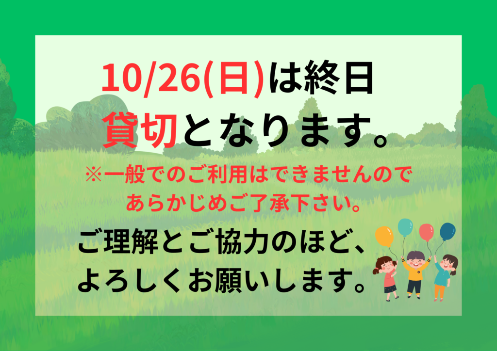 2025年10月26日(日)の大はらっぱ広場の営業についてお知らせです。