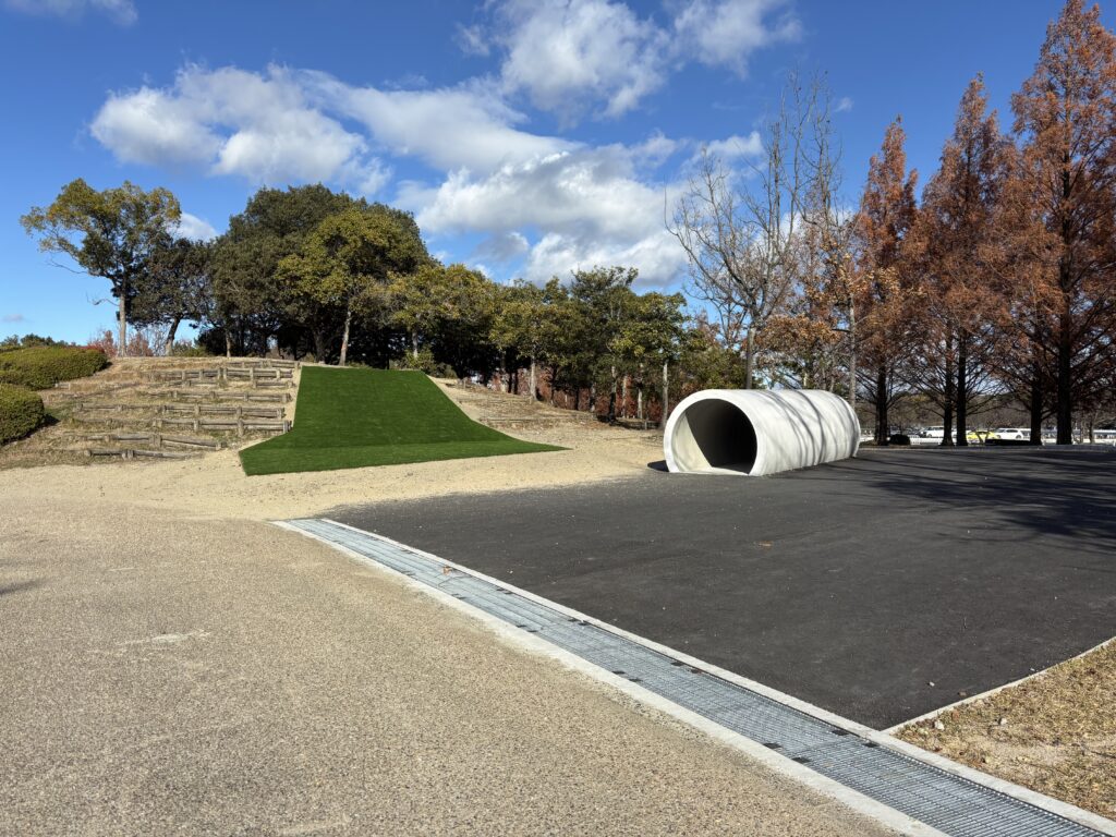 【第1期リニューアル工事の完了】 2025年12月9日 お知らせ 子どもの広場では、令和9年春の全面リニューアルオープンを目指し工事が行われています。このたび、第1期工事として、新エントランスの完成、土管モニュメント、芝滑り台が完成しました!